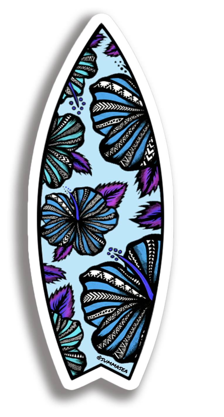 Blue Hibiscus Surfboard Sticker